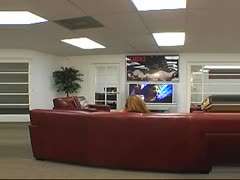 Das Glory Hole voll Sperma für die Blonde