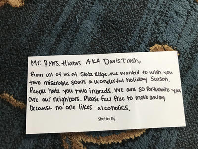 So I have 3 sets of neighbors . To my left are an older couple, which besides the husband constantly being in his garage and within sight of me possibly smoking, I have no problem with . They wave occasionally . To my right is a younger couple (mid 30s) with a young daughter approximately 9 months older than mine . The husband is a pompous prick . . .
