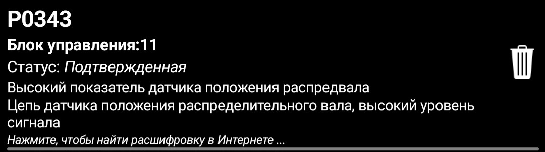 Неисправность датчика распредвала приора