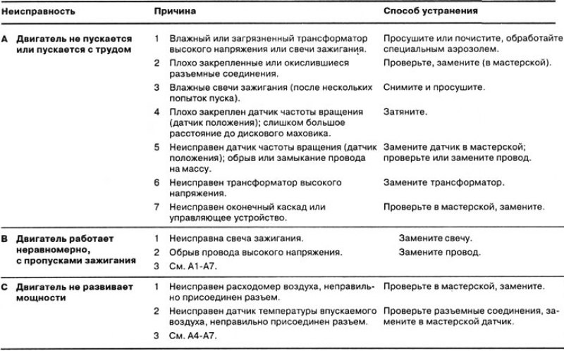 Неисправности системы запуска двигателя