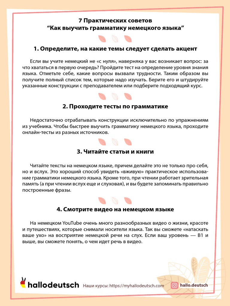 Материалы для изучающих немецкий язык: грамматика, онлайн-уроки, тесты, медиатека, интересные статьи об учебе и жизни в Германии и не только .Онлайн и бесплатно!