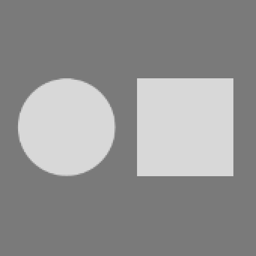 Заменим правый круг на квадрат равный левому кругу. Теперь наша связь данных пятен строится на их разности - один мягкий, круглый, второй твердый квадратный, угловатый. То есть главное отношение - это отношение разности формы.