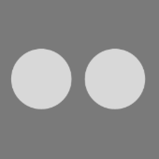 На следующем примере уже два круга. Такое ощущение я бы назвал равенством или повторением - два абсолютно идентичных пятна представлены на пространстве фона. Относительно центра они равны, ни один из них не имеет никаких характерных особенностей. Важнее всего здесь это пространство между этими двумя кругами, они как бы образуют группу, то есть ключевой элемент это связь между ними.