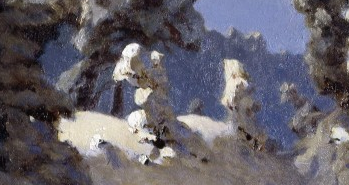Я несколько раз сказал слово чистый. Здесь самое время вспомнить про текстуру, все перечисленные большие объемы дают определенную текстуру, так объемы деревьев по текстуре более шумные для того, чтобы показать чистоту снежной глади и сравнить ее с небесной.