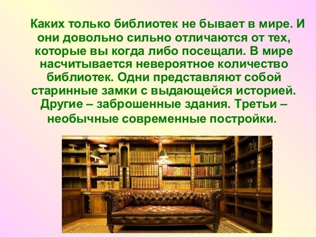 В мире есть огромные книгохранилища, сочетающие богатую историю, великолепную архитектуру и прекрасный интерьер . Мечта книгомана . Библиотека - идеальное место, чтобы читать и учиться . В мире есть огромные книгохранилища, сочетающие богатую историю . . .