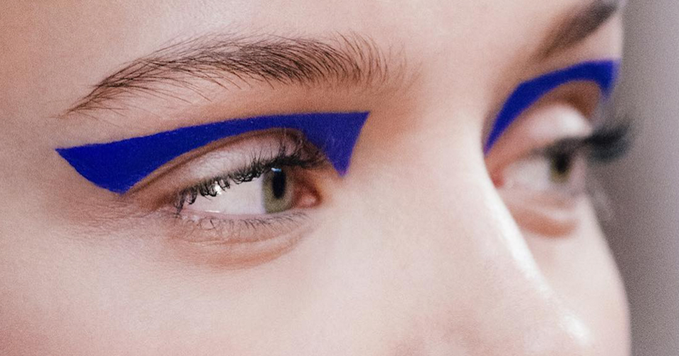Необычные стрелки на глазах с синей подводкой актуальны для . . .