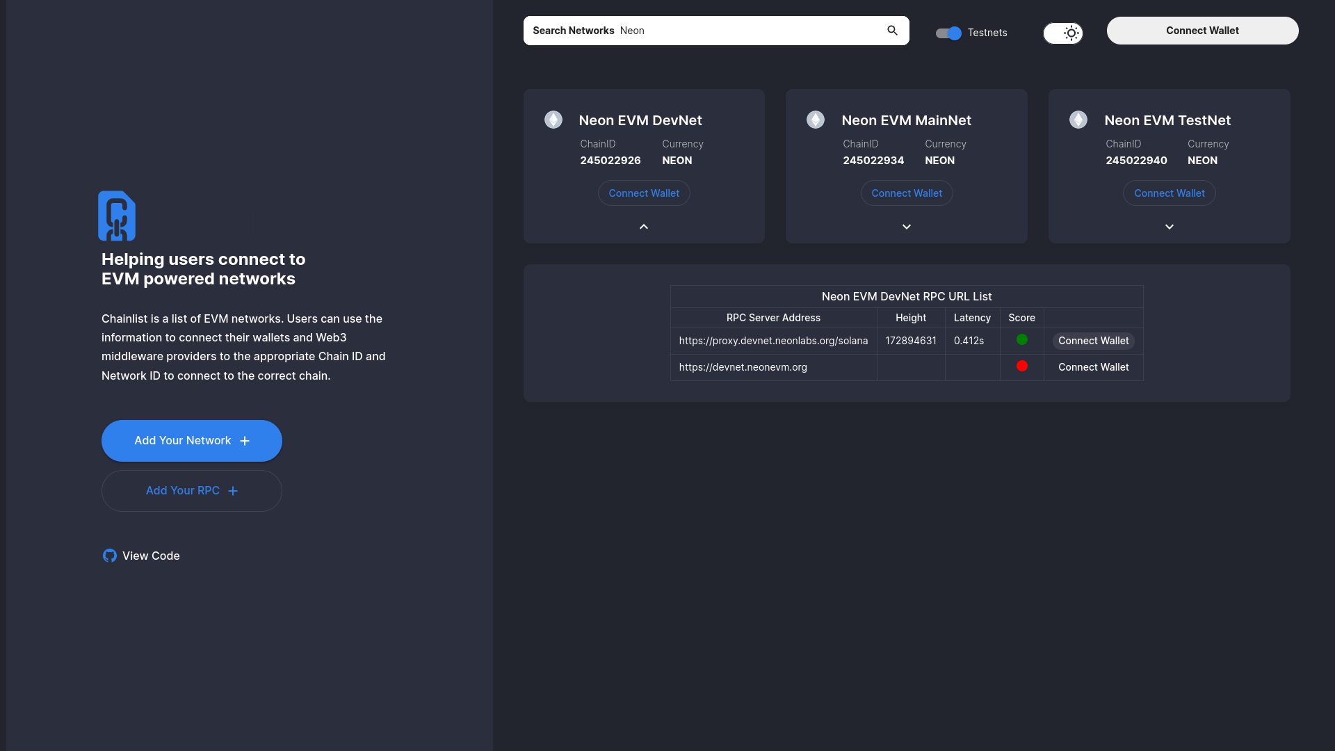 И на всяк оставлю доки по всем видам подключения к сети: https://docs.neon-labs.org/docs/wallet/metamask_setup#installing-metamask