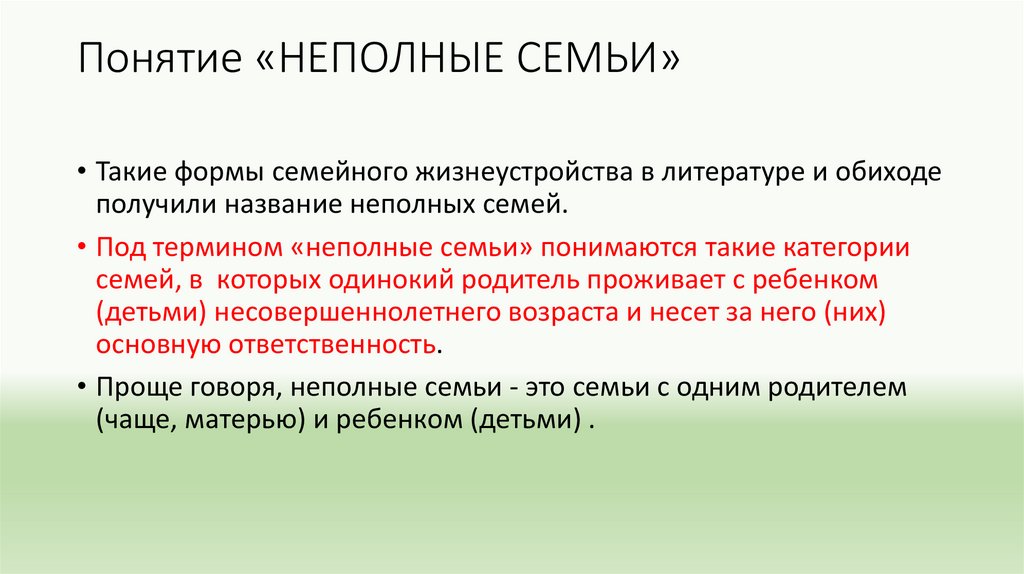 Неполная семья признаки
