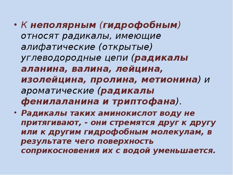 Неполярные радикалы содержат аминокислоты