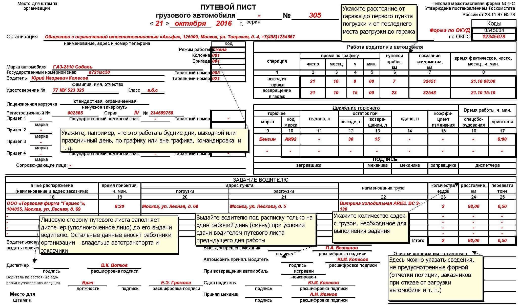 Неправильно заполнен путевой лист 105 фотографий