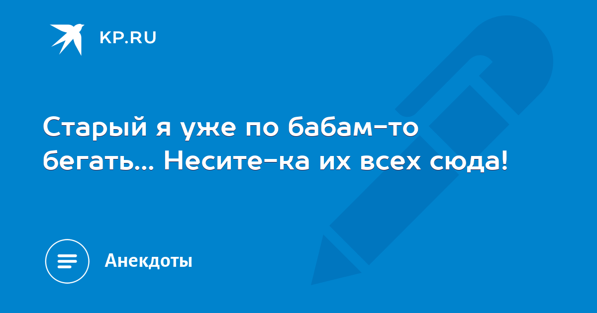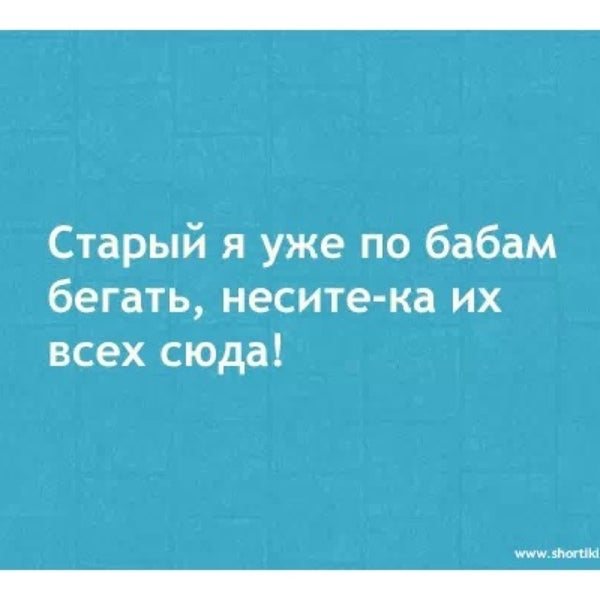 Старый я уже по бабам-то бегать, несите-ка их всех сюда! . . Голосов: 26 Категория: про Мужчин и женщин