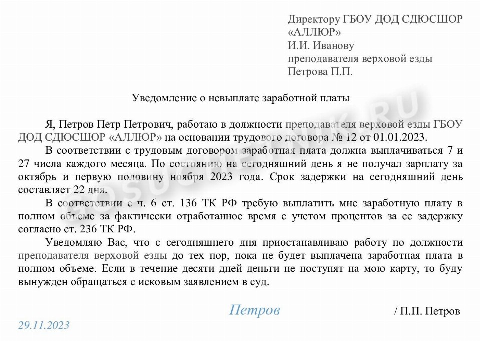 Несвоевременно выплачена зарплата