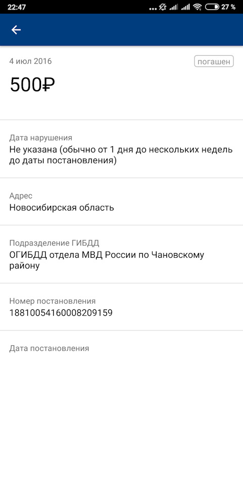 Нет даты нарушения