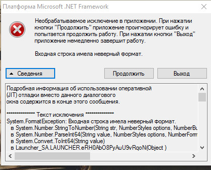 Net framework ошибка необрабатываемое исключение