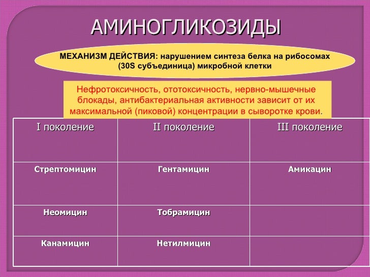 Аминогликозиды - инструкция, способ применения, механизм действия, побочные эффекты и . . .