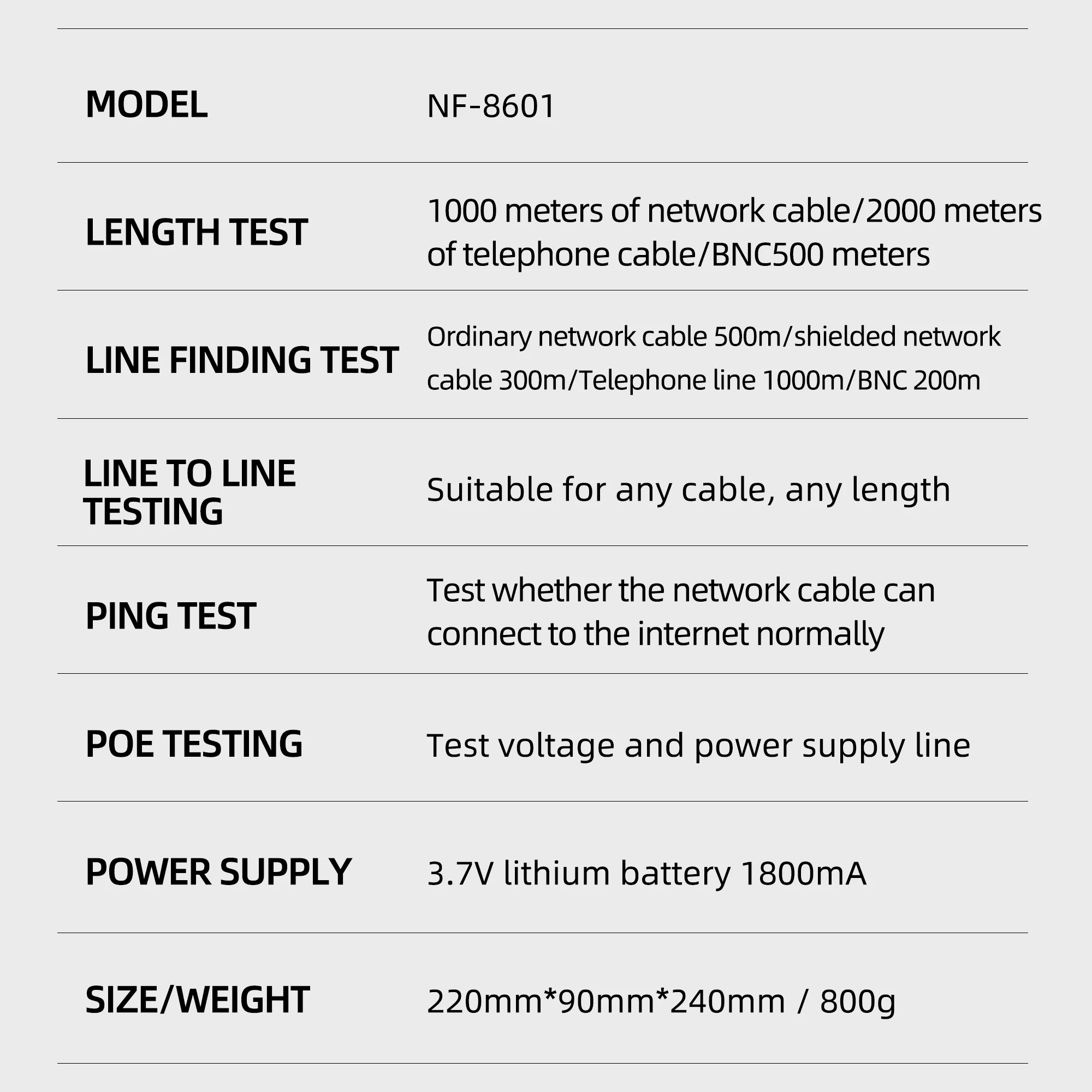 gMMFEQcTHere you can buy Network Cable Tester POE/PING Tester Multifunctional Network Tester Charging NF-8601 Cable Tracker RJ45 RJ11 with free delivery to your post office.