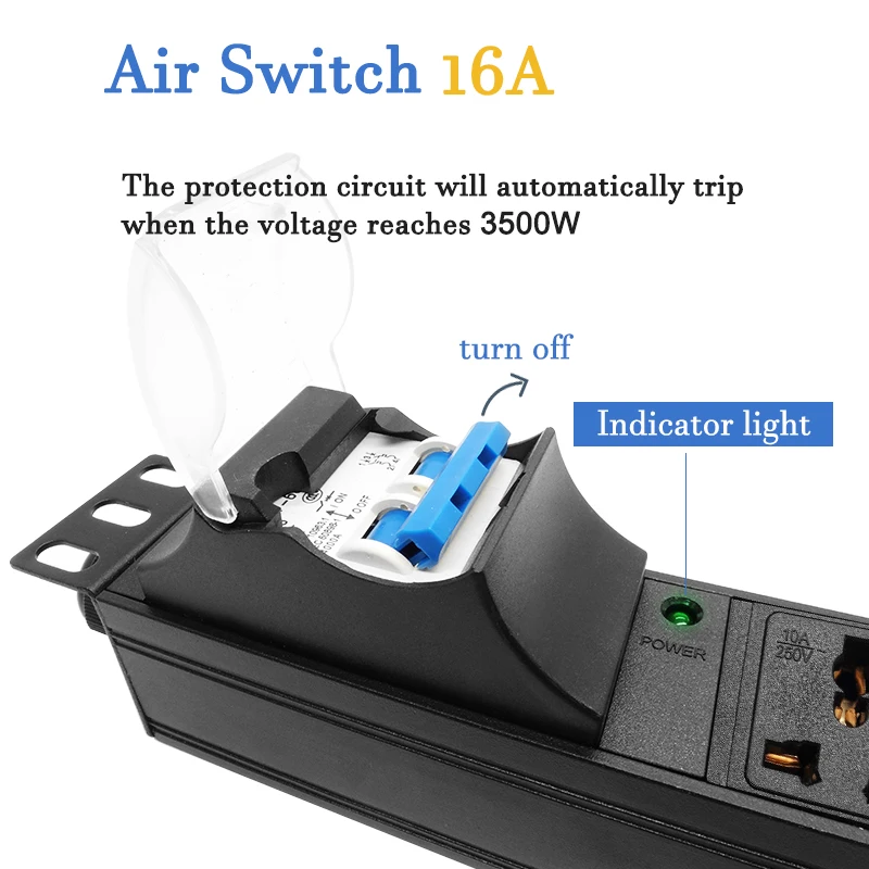 SWBcSKMVHere you can buy Network Rack PDU Power Strip 3500W 16A Air Switch 2-10 Ways Universal Socket Plug Adapter 2Meter extension cord with free delivery to your post office.