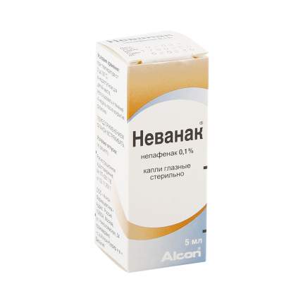 Неванак - нестероидный противовоспалительный препарат для местного лечения заболеваний глаз . Выпускается в виде раствора с непафенаком в качестве действующего вещества . Назначается для профилактики и лечения послеоперационной боли и воспалительных явлений при хирургических вмешательствах по поводу удаления катаракты .