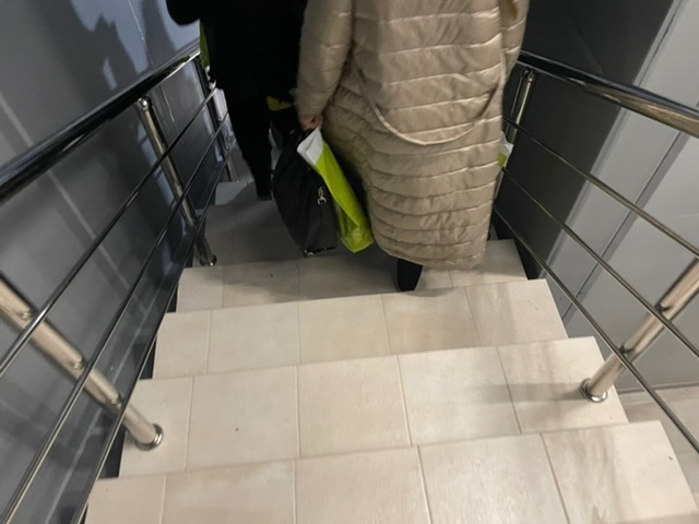 Пассажир выходит из самолёта с маленьким чемоданом на колёсиках и первое с чем он сталкивается – винтовая лестница, которая ведёт на нижний этаж. Могли бы ведь предусмотреть эскалатор или иной удобный способ добраться до нижнего этажа пассажирам с сумками на колёсах. Ведь мы говорим о международном терминале. Да лифт есть там для маломобильных пассажиров, но не для пассажиров с сумками