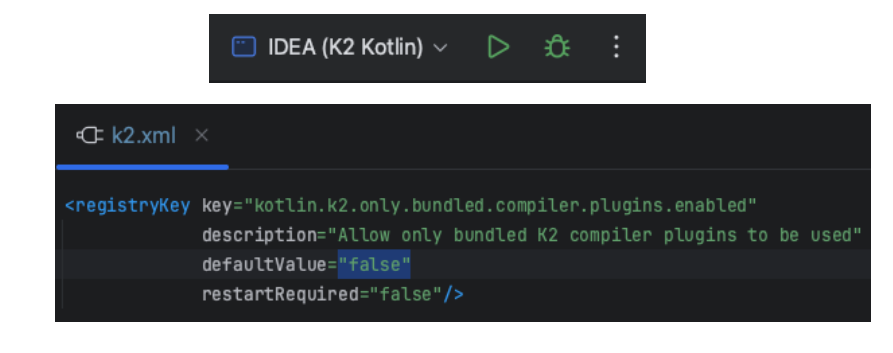 Но как оказалось K2 в IDEA и Android Studio поддерживается экспериментально, и чтобы включить его нужно собрать IDEA из исходников специальной конфигурацией и выключенным kotlin.k2.only.bundled.compiler.plugins.enabled, чтобы IDEA или студия подхватили плагины.