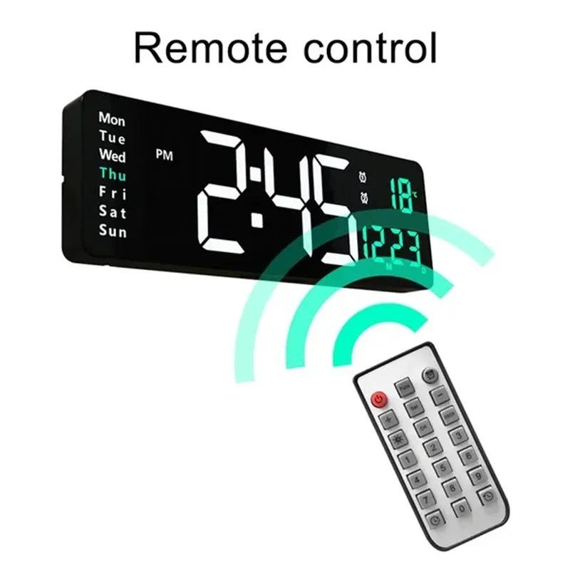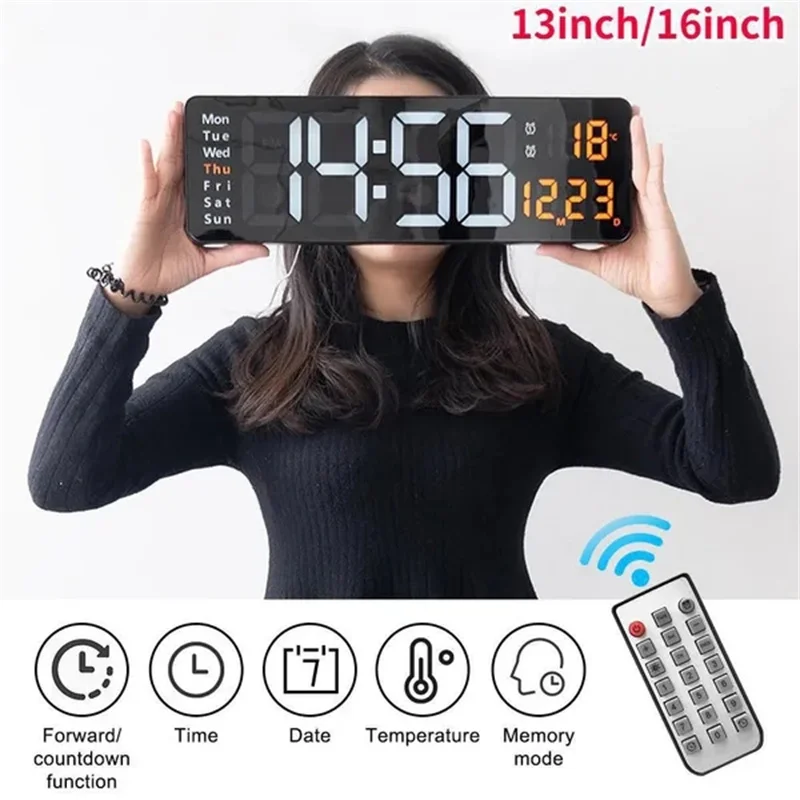 New 13/16 Inch Large Display Wall-mounted Digital Wall Clock Remote Control Temp Date Week Display Dual Alarms Large LED Clocks - Купить с бесплатной доставкой