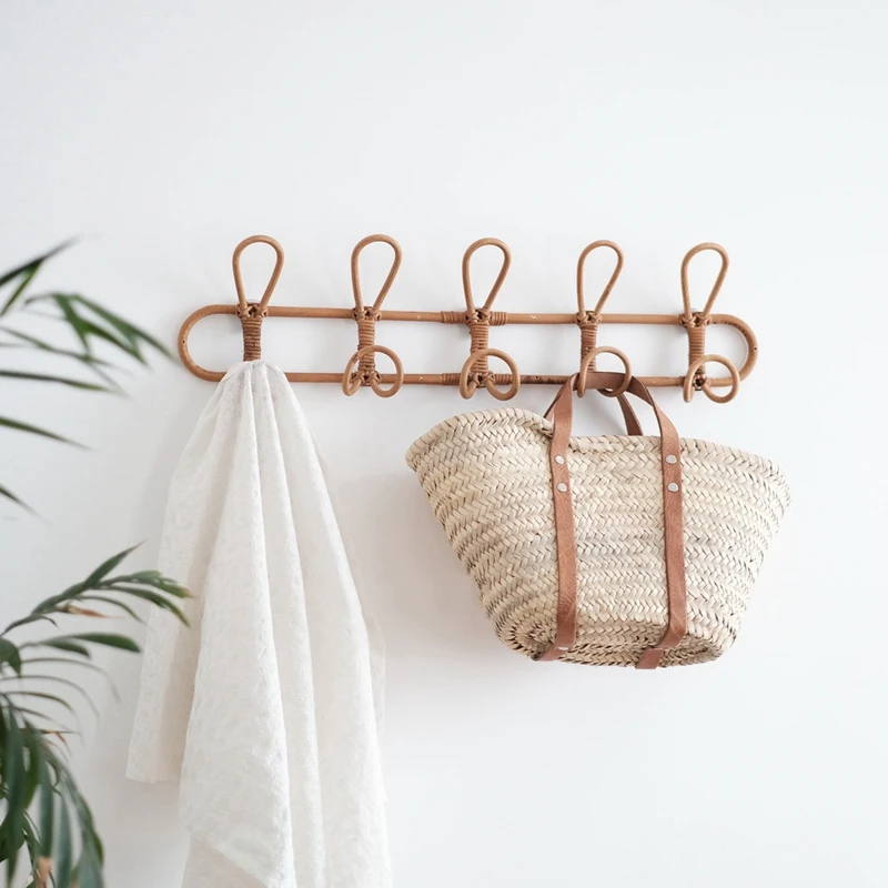 New 2X Large Vintage Rattan Clothes Hanger Kids Garments Organizer Rack Rattan Wall Hooks Clothes Hat Hanging Hook Room - Купить с бесплатной доставкой