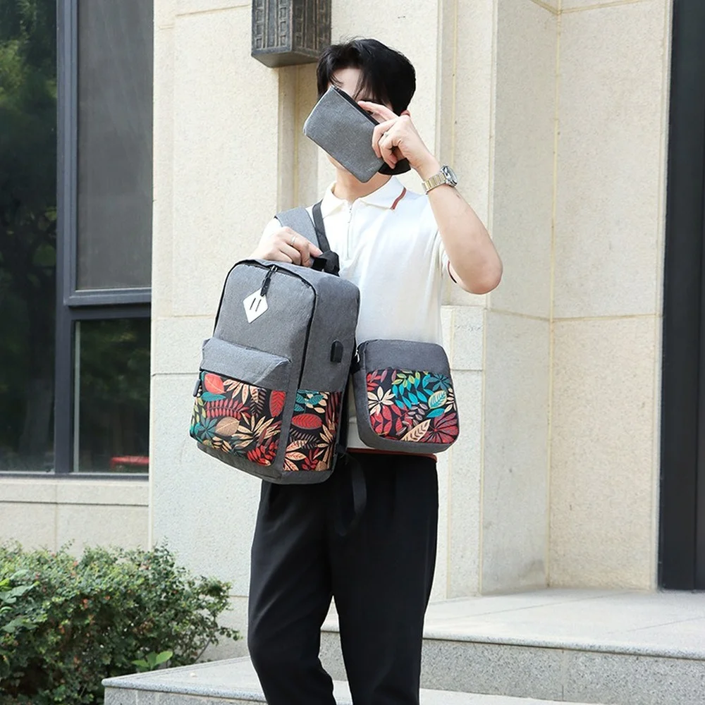 New 3Pcs/set Maple Leaf Backpack Large-capacity Multi-function USB Charging Outdoor Backpack Male Student Schoolbag Backpacks - Купить с бесплатной доставкой