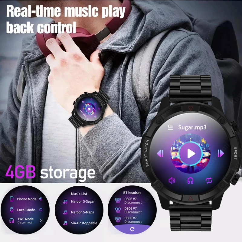 jMkLtLroHere you can buy New 4G Memory Music Smart Watch Men Outdoor Sports Smartwatch Bluetooth Call Clock 1.6 Inch Waterproof Watches For Android ios with free delivery to your post office.