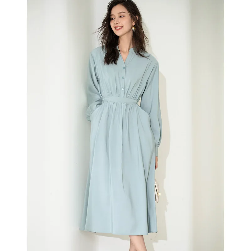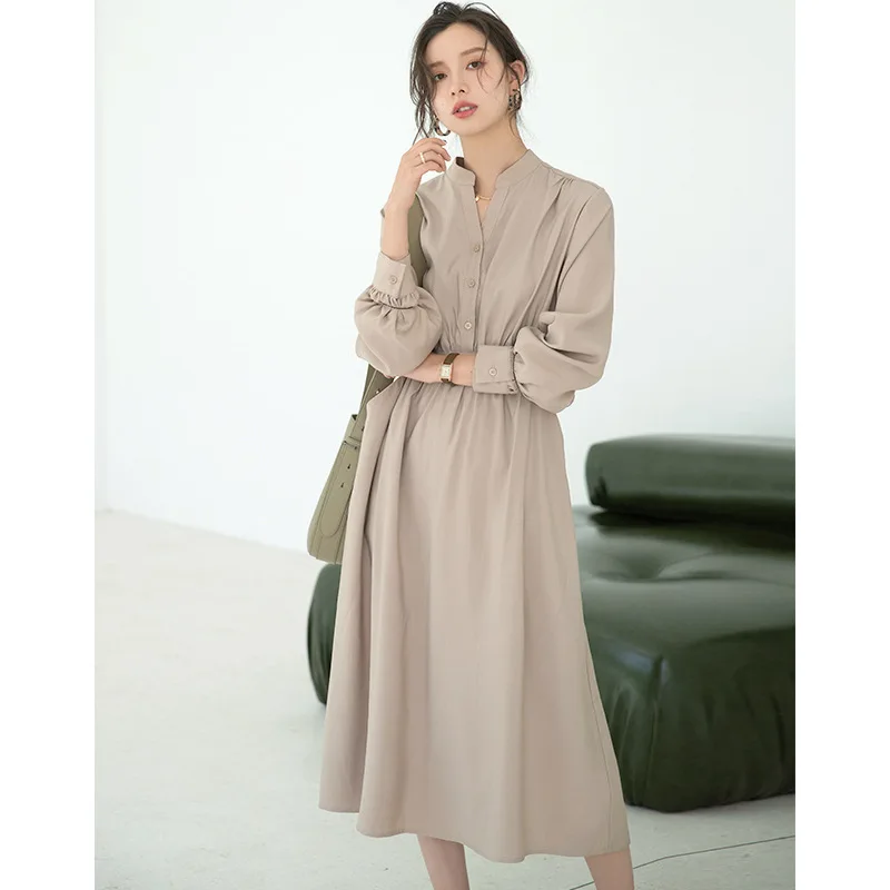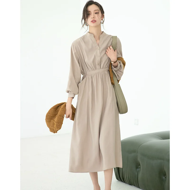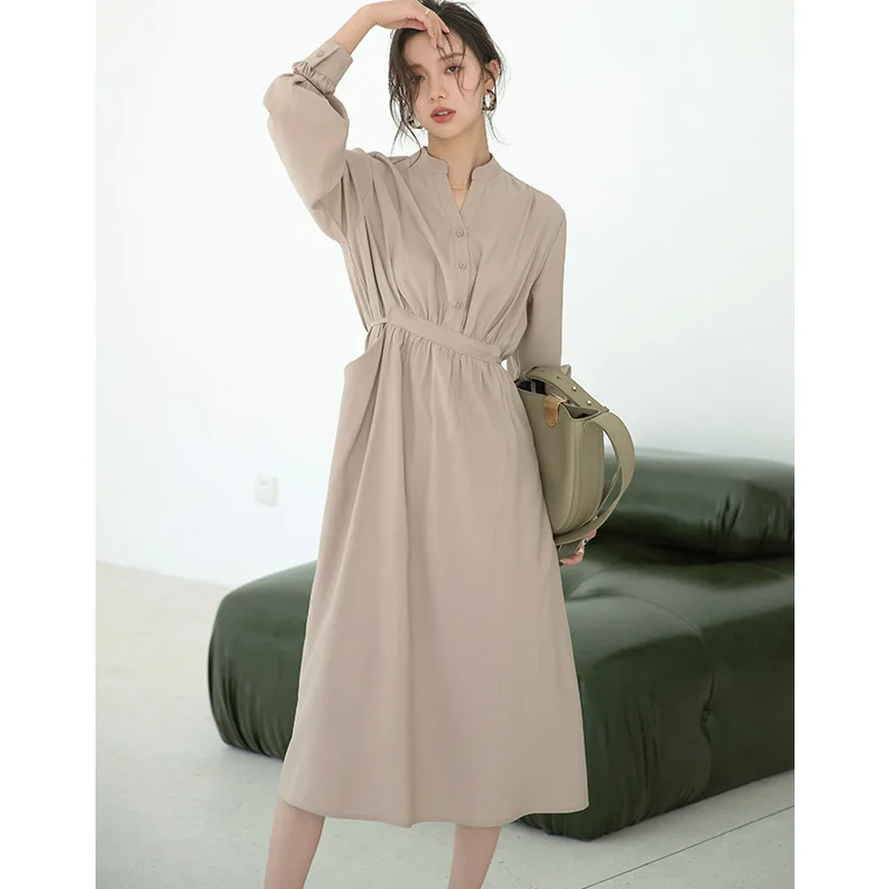 "New Autumn and Winter Long Temperament Slim Dress with Sashes and Button V Neck Full Sleeves Fall Fashion Clothes for Women 2021" * Buy Now Just For 77$