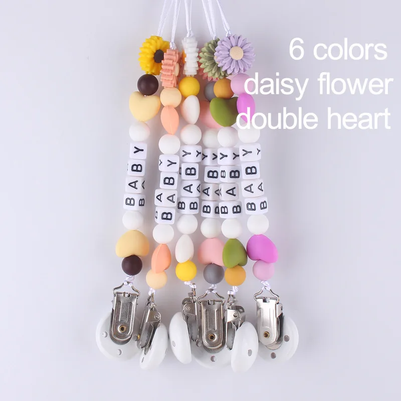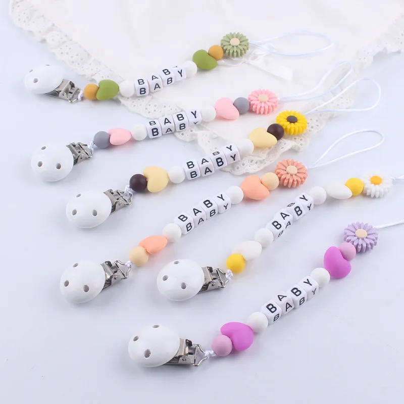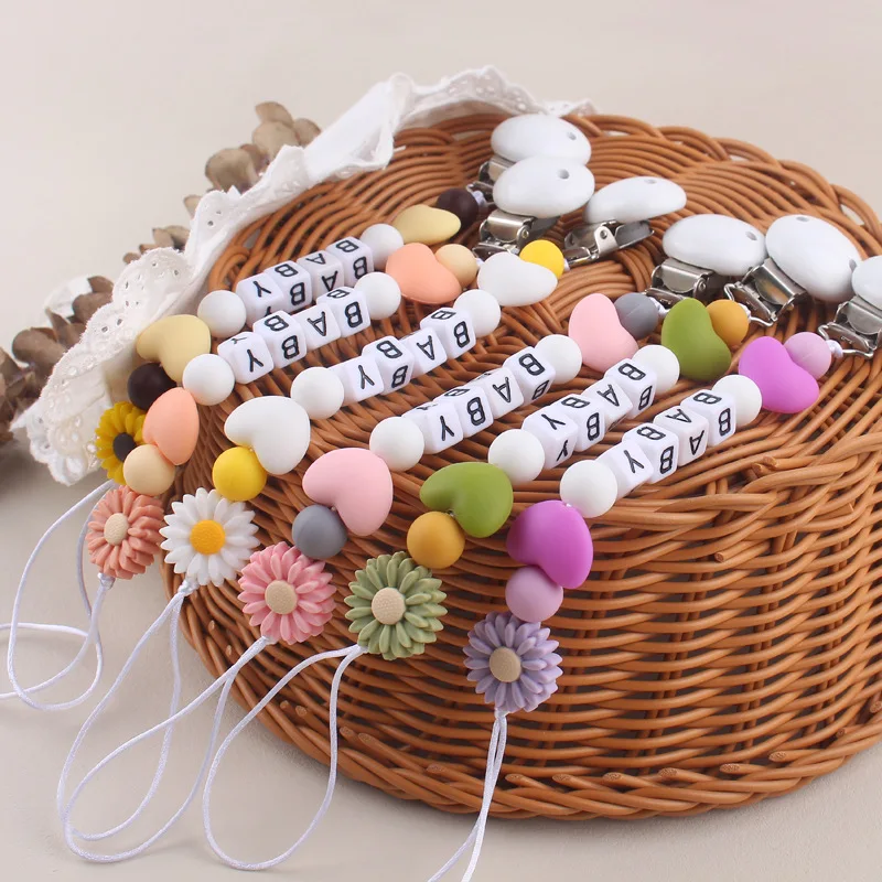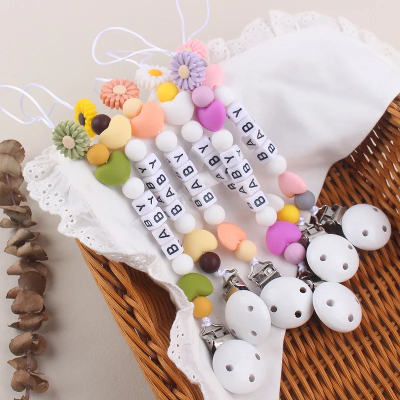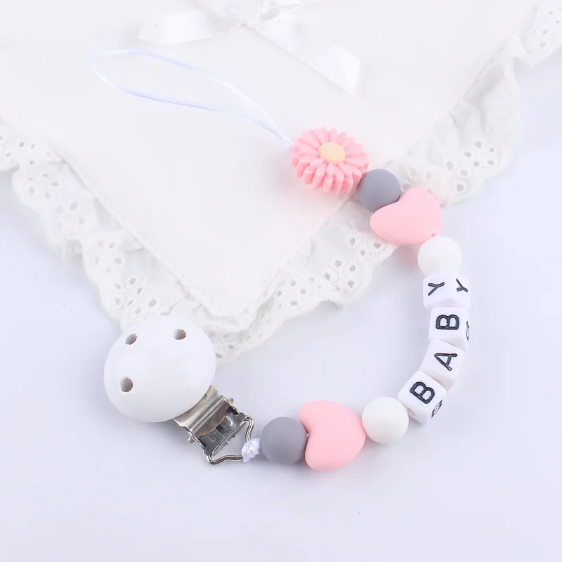 New Baby Personalized Silicone Pacifier Chain Flowers Silicone Pacifier Clip Baby Name Custom Teether Anti-Drop Chain - Купить с бесплатной доставкой