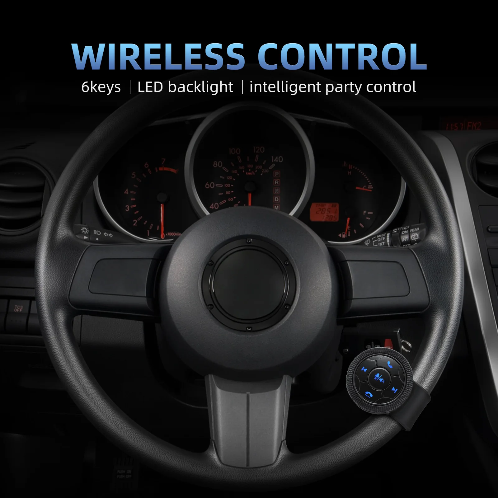 eQpUGbKpPHere you can buy New Car Smart Steering Wheel Controll Button 7-Key Function Customize with Blue Background Light Wireless Phone Media Button with free delivery to your post office.