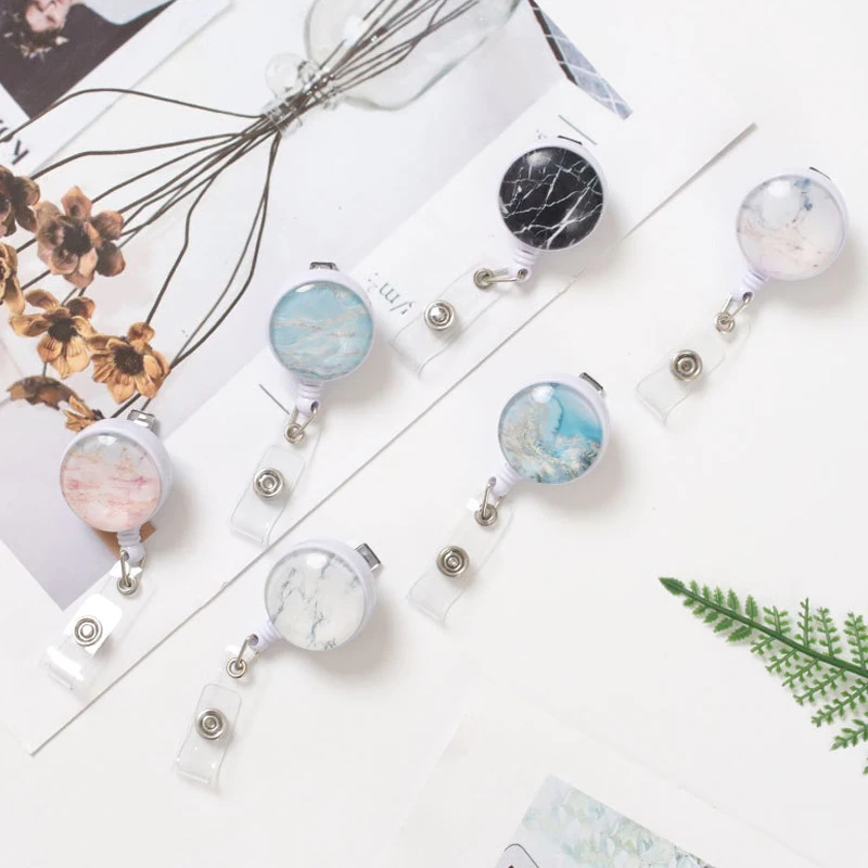 New Chest Card Expansion Buckle Marble Patterned Eexpansion Buckle Work Card Clip Work Card Easy Pull Buckle Retractable Buckle - Купить с бесплатной доставкой