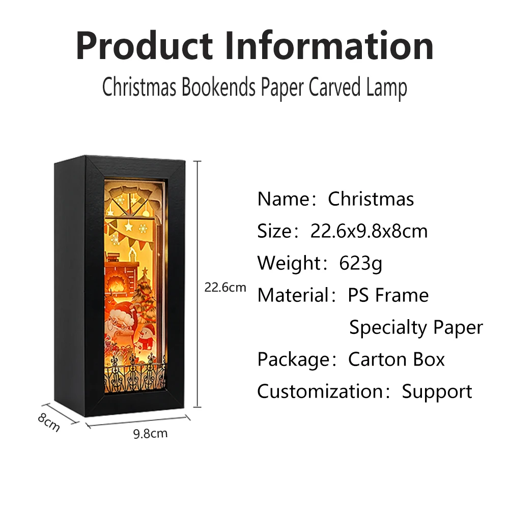 "New Christmas Book Nook Papercut Light Boxes Led Bookend Bookshelf Insert Bookcase Christmas Decorations Children Birthday Gift" * Buy Now Just For 22$