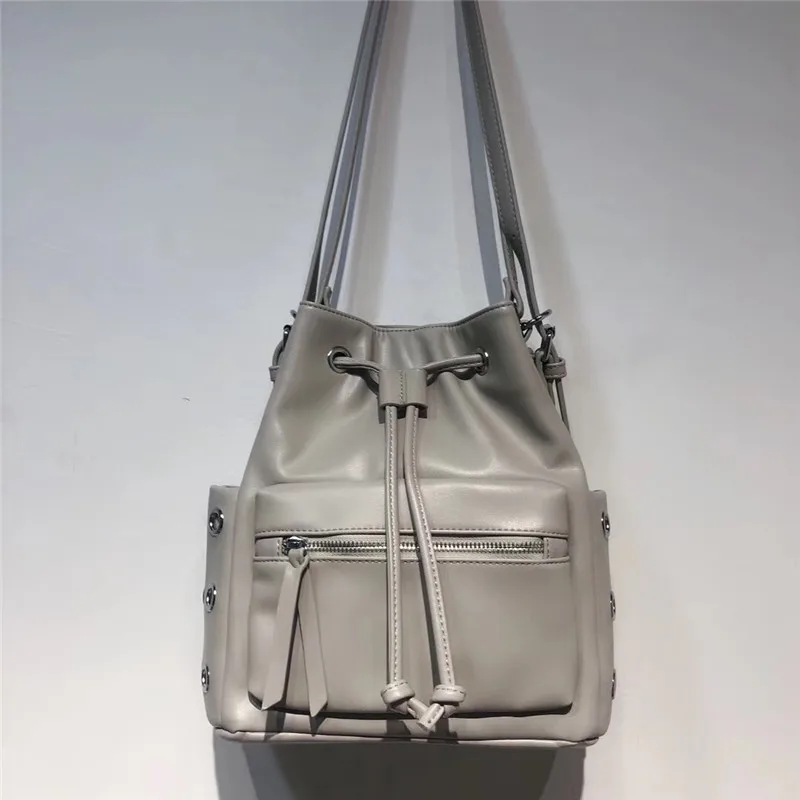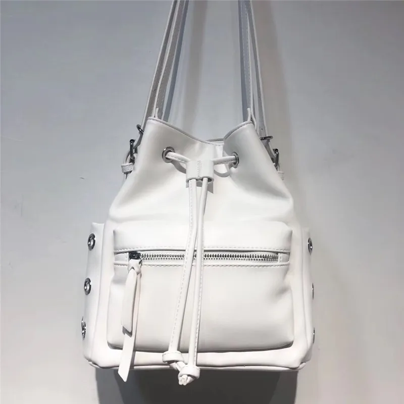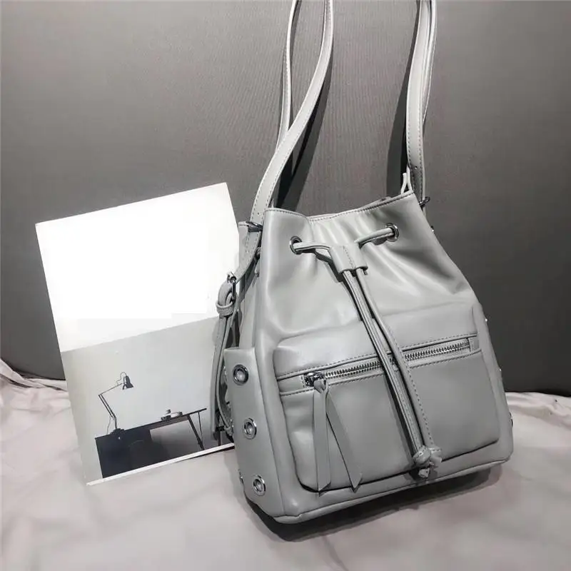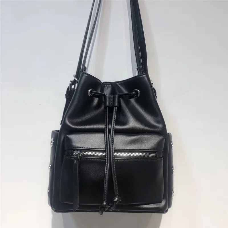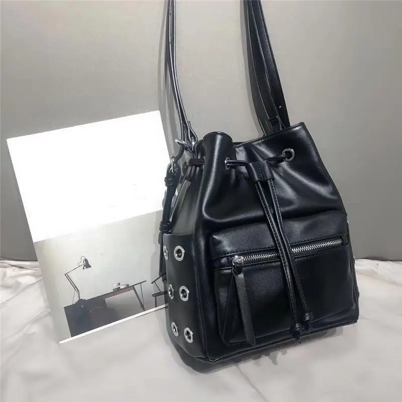 TYxISnWwKDHere you can buy New European And American Fashion Motorcycle Style Shoulder Bag Women's Rivet Drawstring Pocket Large Capacity Bucket Bag Women with free delivery to your post office.