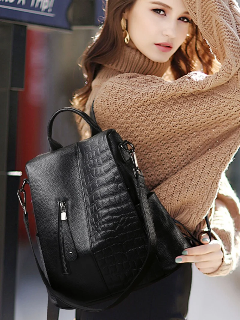 sSuJykXyteHere you can buy New Fashion Crocodile Embossed Backpack For Women's Casual And Simple Large Capacity Pu Soft Leather Multifunctional Backpack with free delivery to your post office.