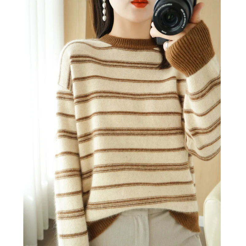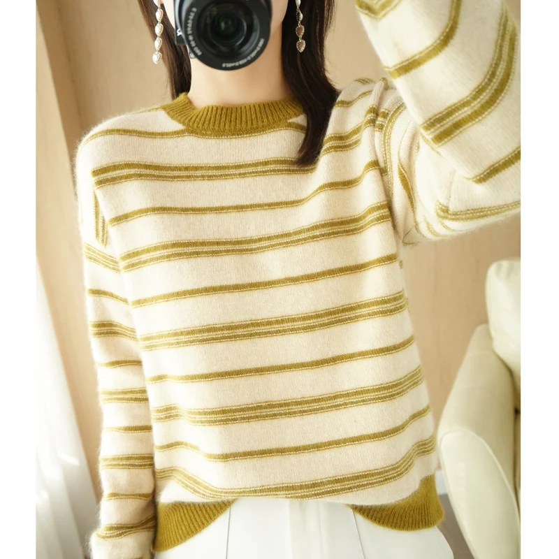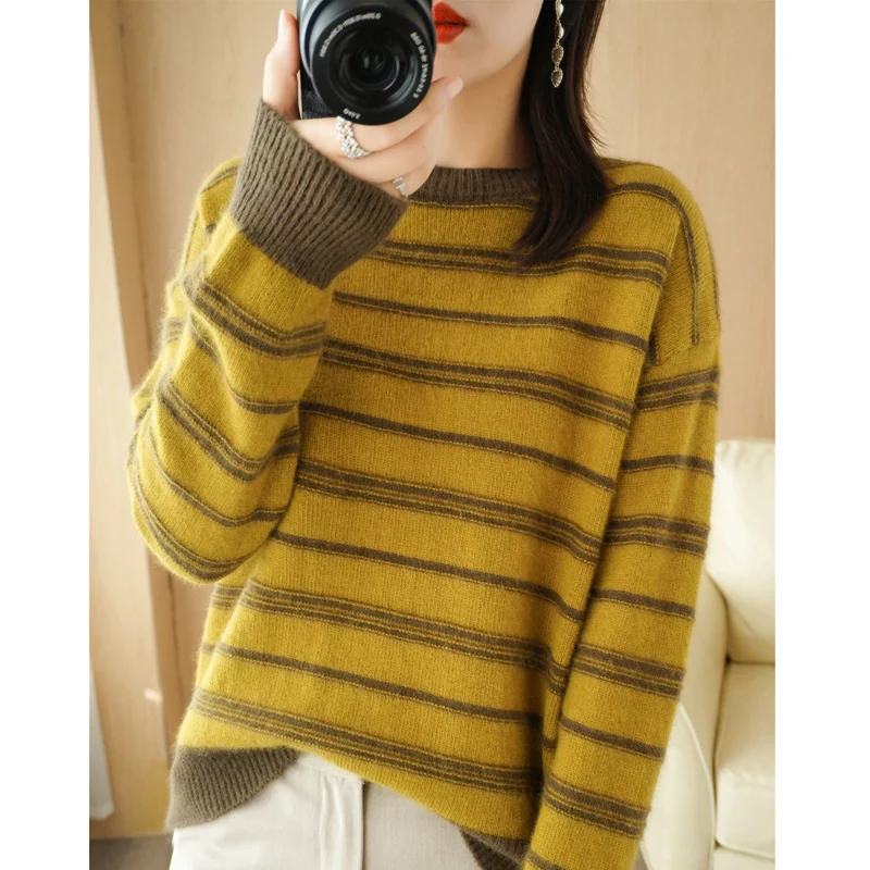 «New Fashion Knit Sweater For Autumn/Winter 2023 Women's Round Neck Matching Color Pullover Korean Version Loose Sweater Top» по лучшей цене на рынке! Всего за 19$ (1805рублей)