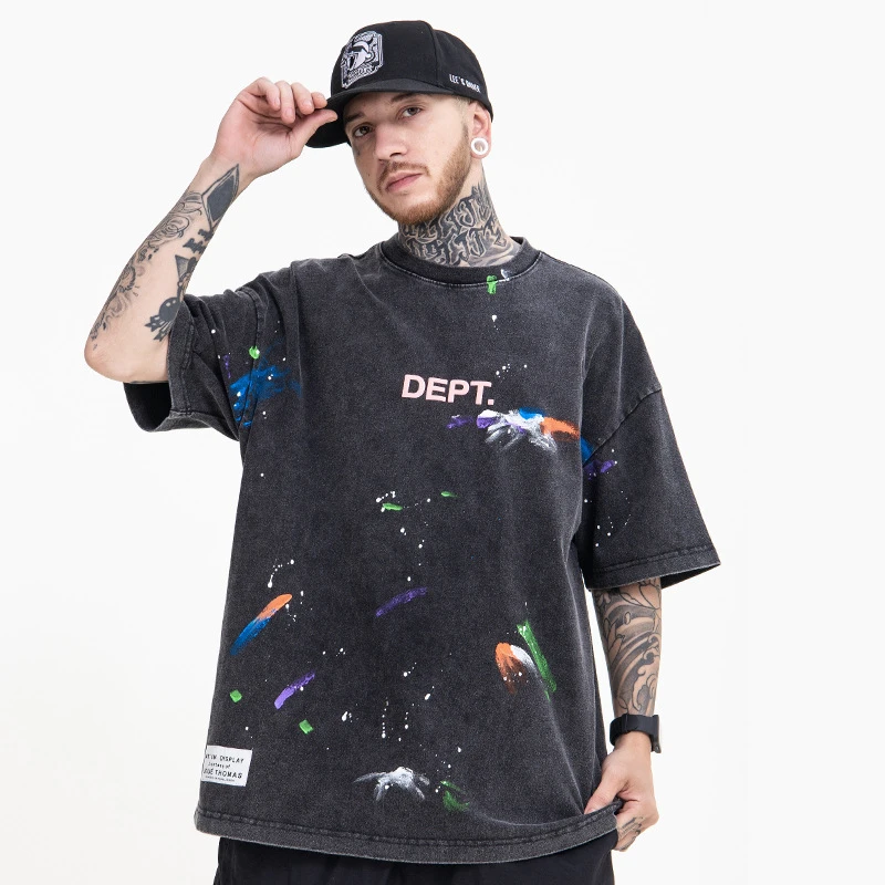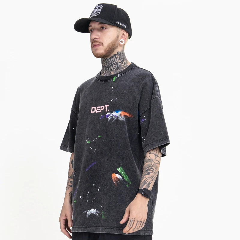 «New Fashion Spring Summer Tops For Men Handwork Ink Splash High Street Style Oversize T-shirt For Men Vintage Washing Water TOP» по лучшей цене на рынке! Всего за 28$ (2660рублей)