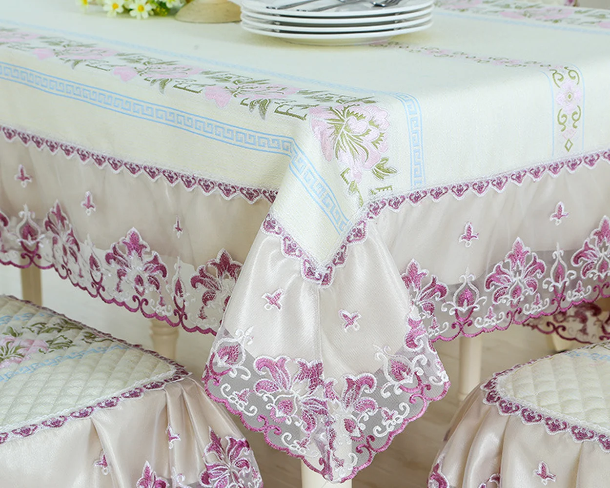 New Floral Print Lace Europe Cotton Home Kitchen Party Tablecloth Set Suit Table-cloth Rectangular Round Table Cloth Chair Cove - Купить с бесплатной доставкой