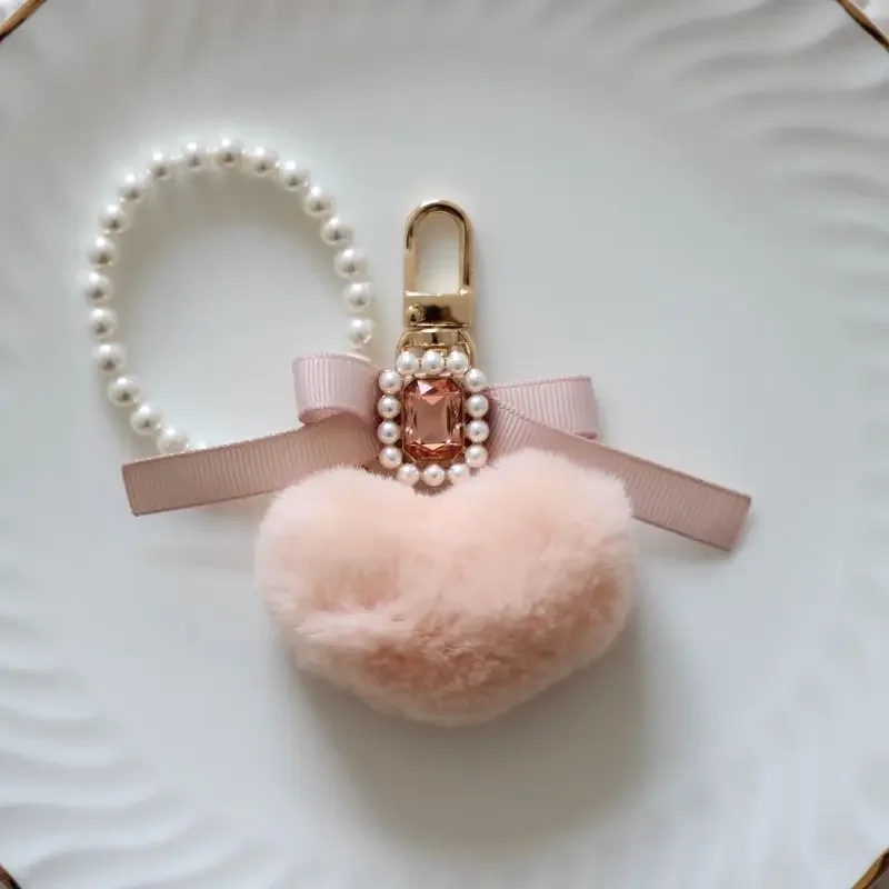 "New Handmade Pearl Bow Car Key Ring Rabbit Fur Heart Shape Bag Charms Macaron Color Heart-Shaped Pendant for Handbag Keychain" * Buy Now With Free Shipping Just For $20