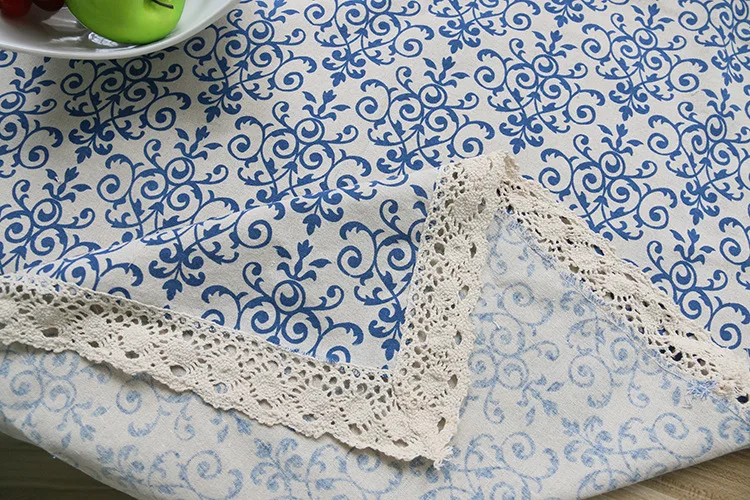 New High Quality Cotton Linen Rectangular Tablecloth New Blue And White Porcelain Pattern Tablecloths Vintage Style Table Cloths