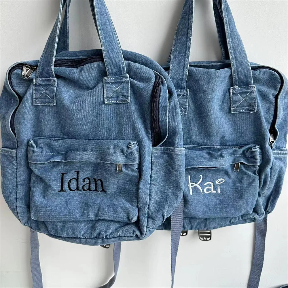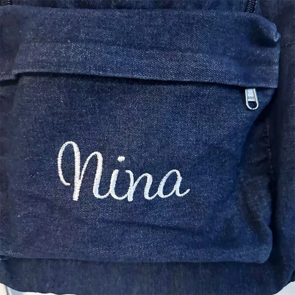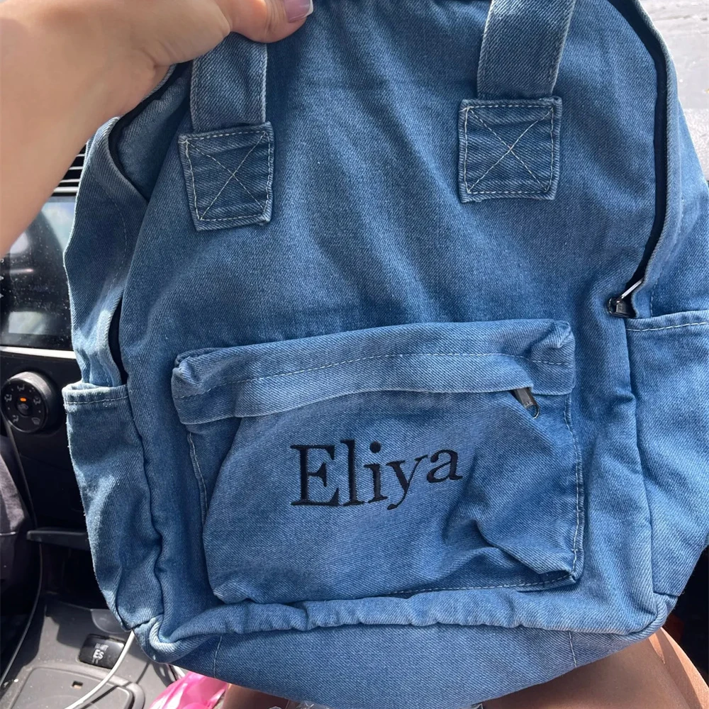 MKvvaXIzNkHere you can buy New High School Student Backpack Simple Denim Canvas Backpack with Embroidered Name Girl's Large Capacity Schoolbags Custom Gift with free delivery to your post office.