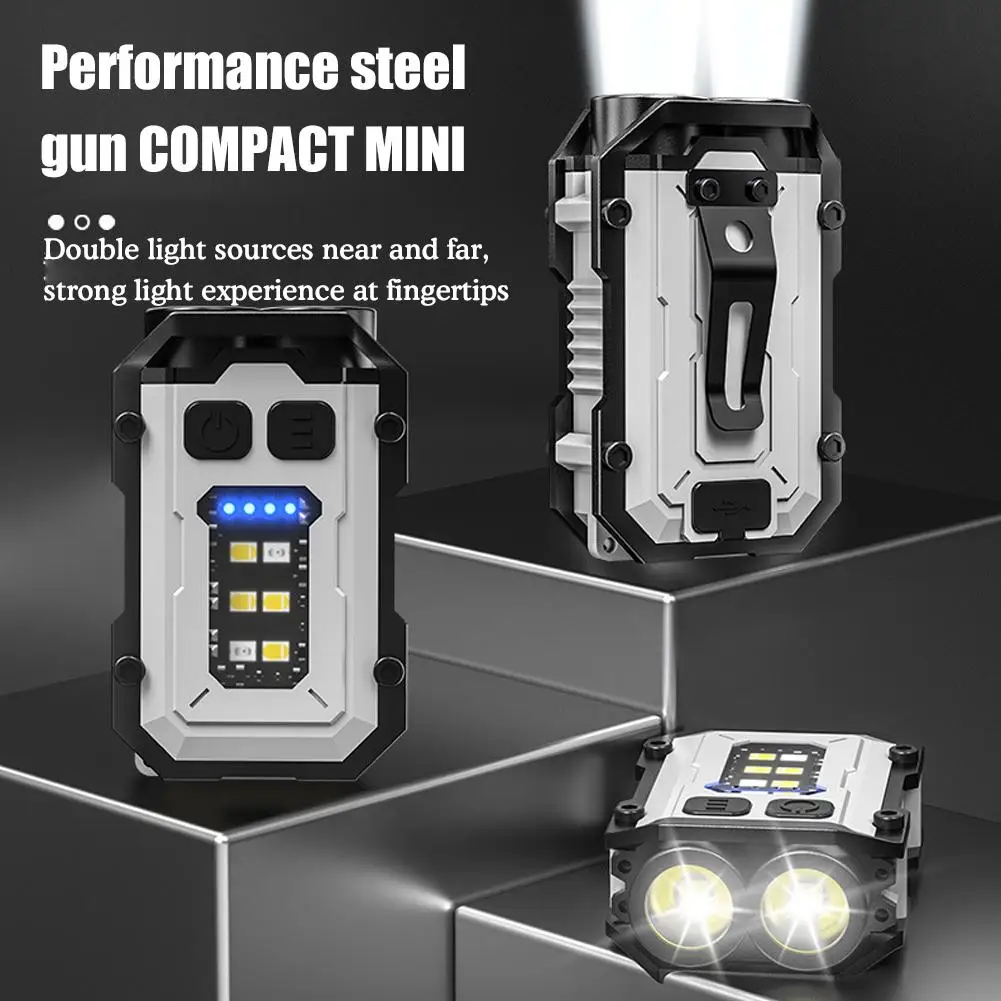 New Keychain Light Outdoor Dual Light Source Strong Light USB Rechargeable Mini Flashlight Cap Clip Light Warning Work Light - Купить с бесплатной доставкой