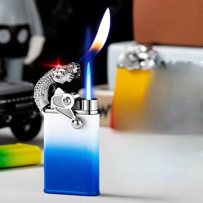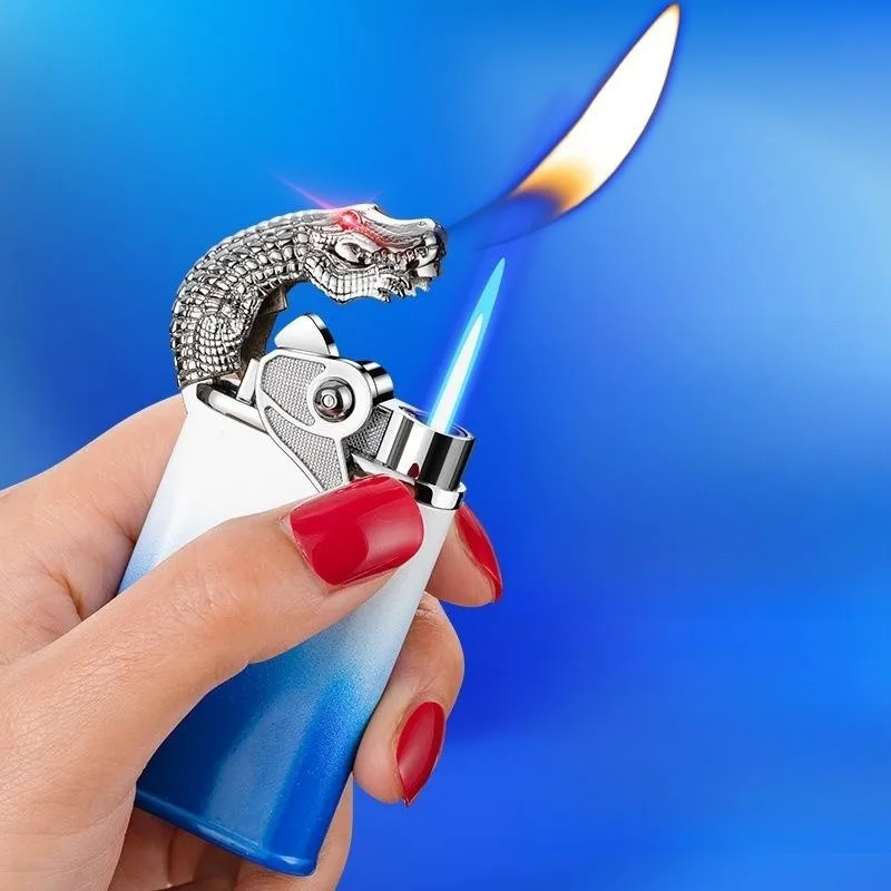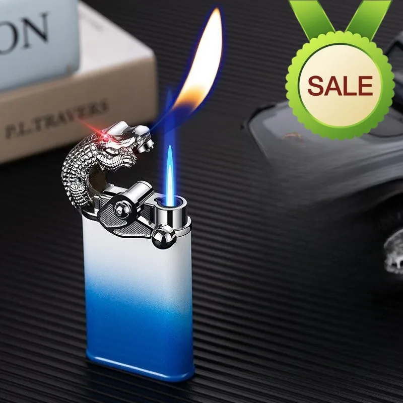 New Metal Dual Fire Butane Inflatable Lighter Outdoor Windproof Open Flame Direct Flame Personalized Creative Lighter Men's Gift - Купить с бесплатной доставкой