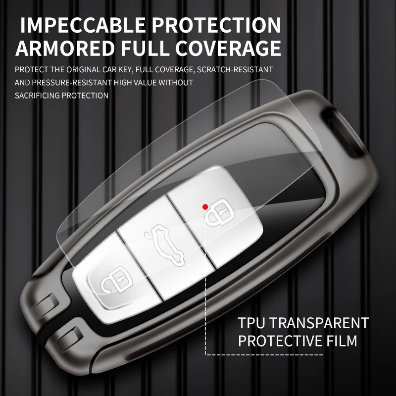 «New Metal Leather Car Key Case Cover for Audi A3 A4 A6 A7 A8 4K B9 E-tron Q5 Q8 C8 D5 SQ8 Auto Keyless Protector Shell Accessory» по лучшей цене на рынке! Всего за 12$ (1140рублей)