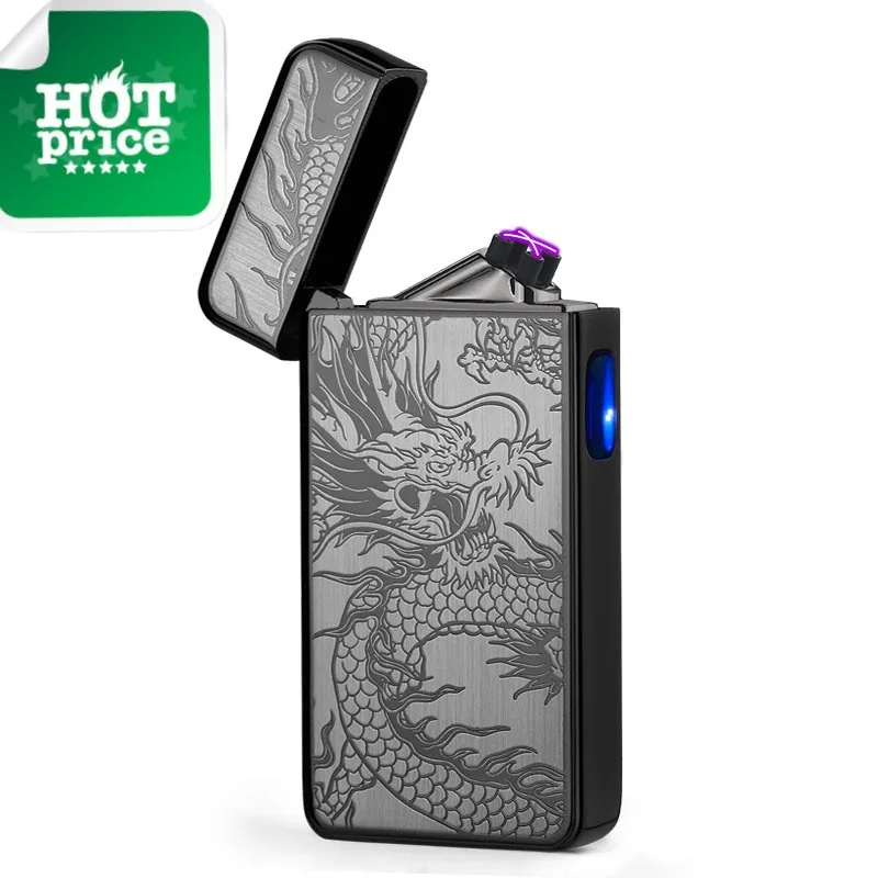 New Metal Portable Windproof Double Arc USB Rechargeable Lighter Personalized Dragon Pattern Long Lasting Cigar Tool Men's Gift - Купить с бесплатной доставкой