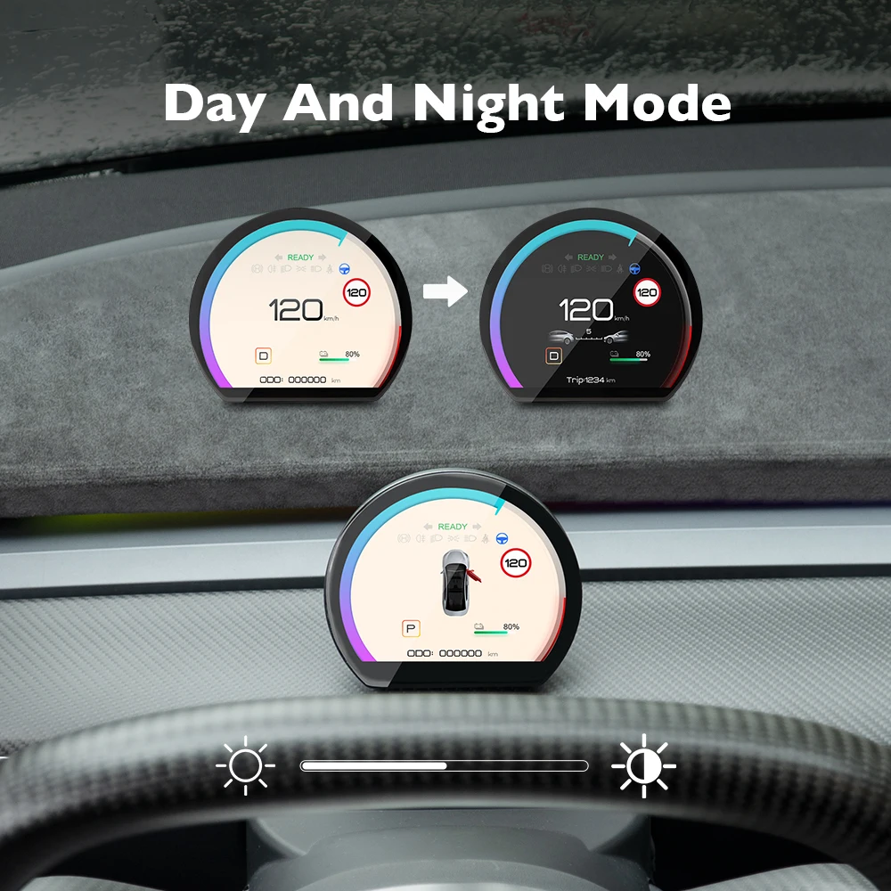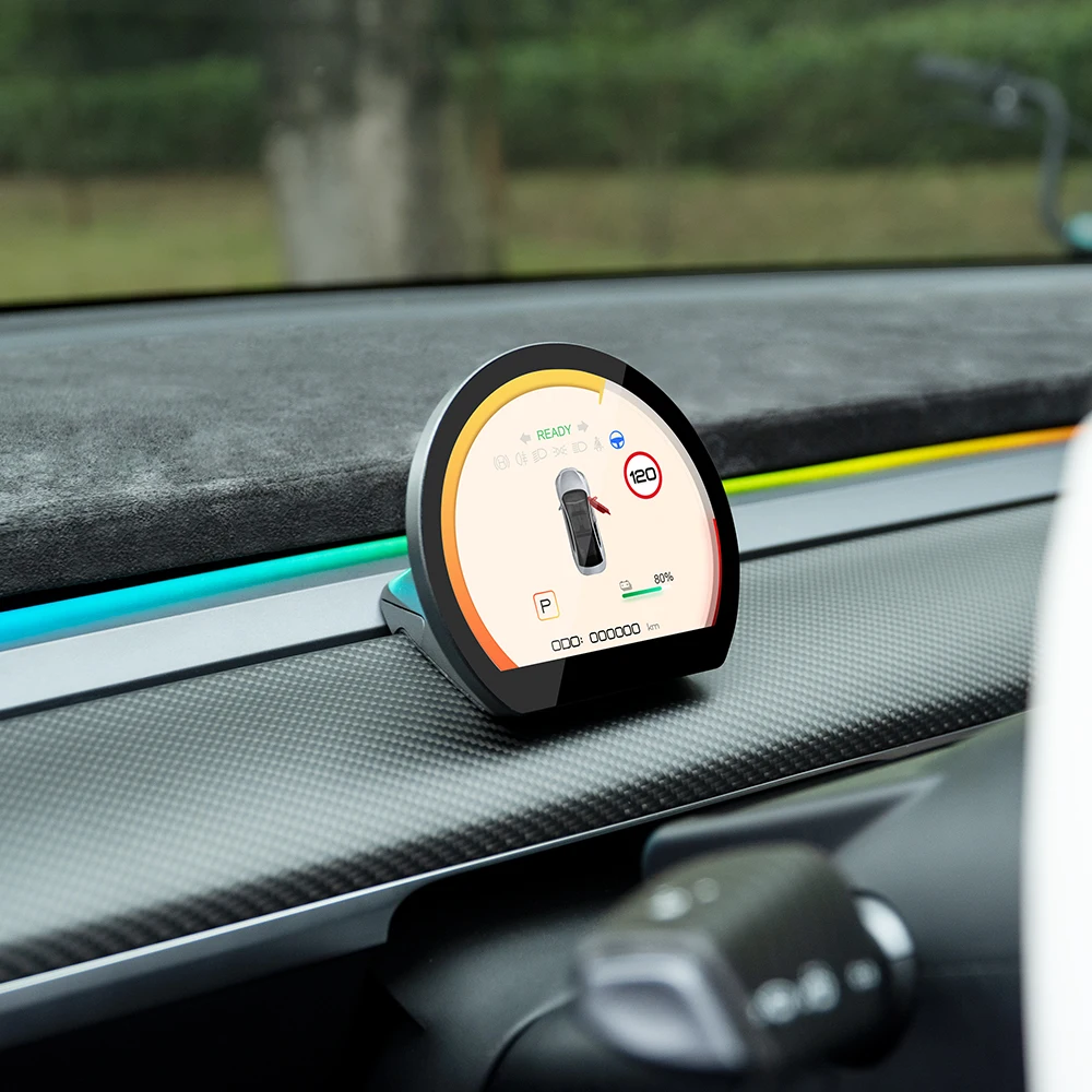 New Mini HUD For Tesla Model 3 Y Auto Meter LCD Screen Mileage Speed Door Open Informatiom Digital Dashboard Display Upgrades - Купить с бесплатной доставкой