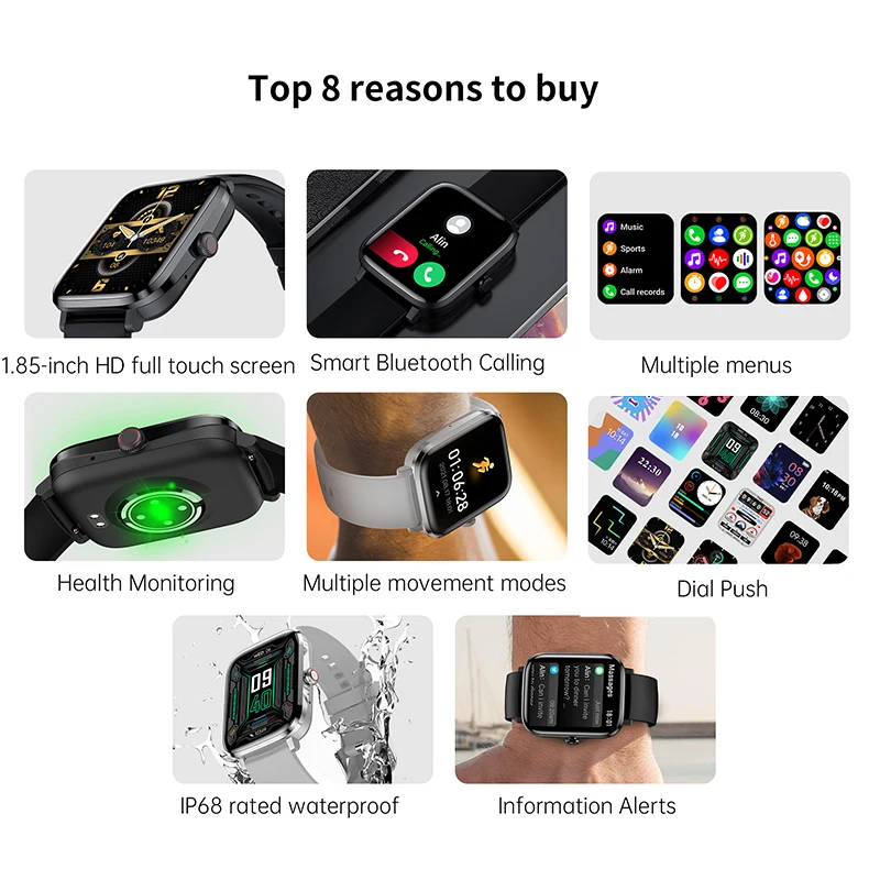 KCdZiAJemЗдесь вы сможете купить New NFC Bluetooth Call Square Smart Watch Man Woman 1.83" HD Touch Screen Heart Rate Monitoring Sport Smartwatch IP68 Waterproof с бесплатной доставкой до вашего почтового отделения.