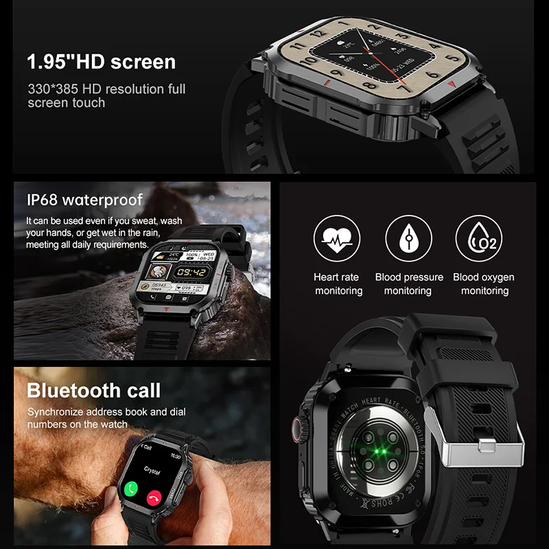 New Outdoor Smart Watch Men 1.95" Screen IP68 Waterproof Watches Bluetooth Call Smartwatch GPS Motion Trajectory For Android IOS - Купить с бесплатной доставкой