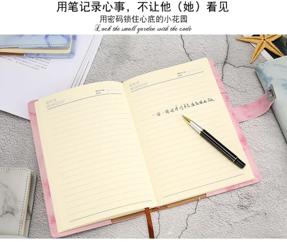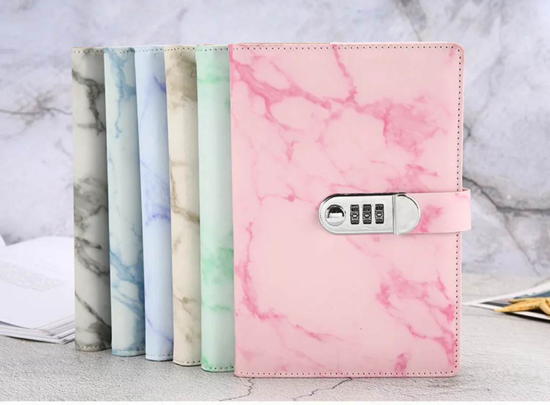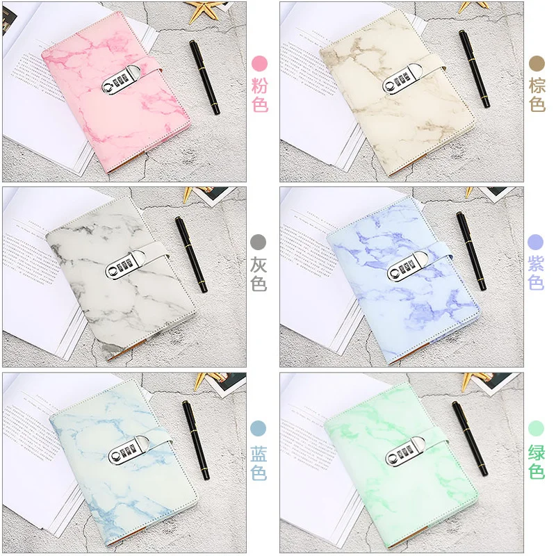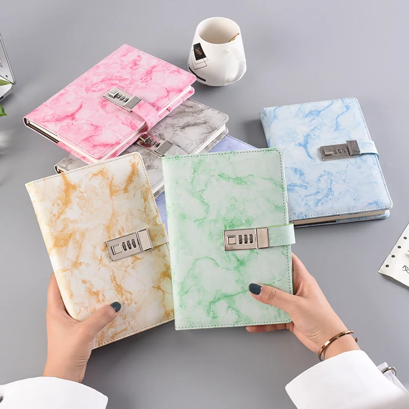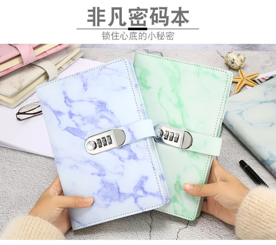 New Password Notebook Marble Texture 100 Sheets Personal Diary with Lock Code Thick Notepad Leather Office School Supplies Gift - Купить с бесплатной доставкой