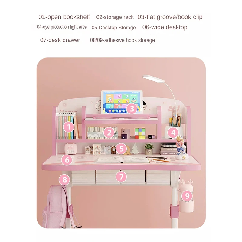 SnemtSCWXYHere you can buy New Pink children's Study Table, Elementary School Writing Desk Home Simple Blue Zonal Storage, Chair Liftable Set Combination with free delivery to your post office.